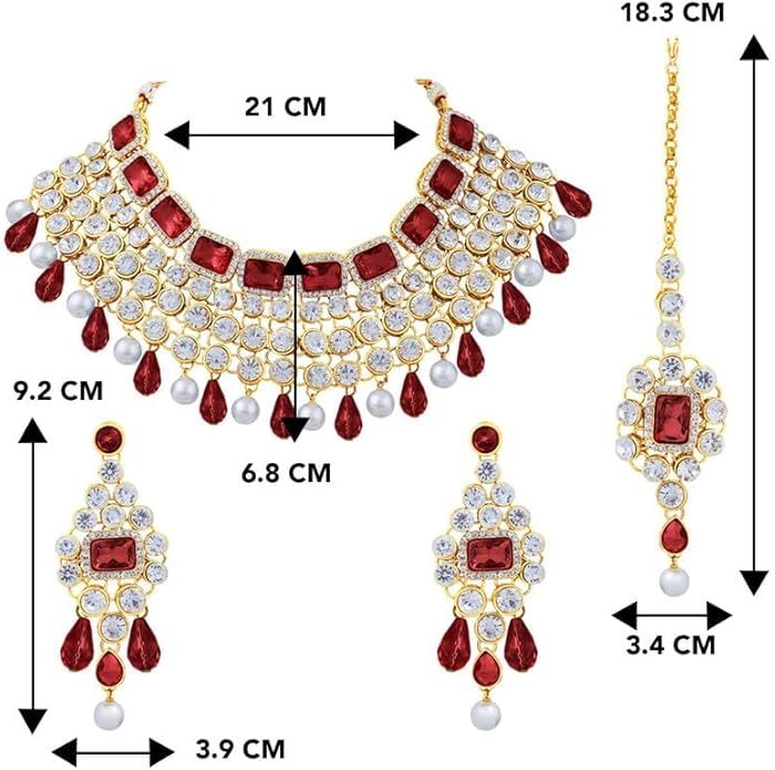 - Product Dimension :Neck piece – Length – 8 inch x Width – 2.5 inch; Earrings - Height – 3.5 inch x Width - 1.5 inch; Tikka – 7 inch