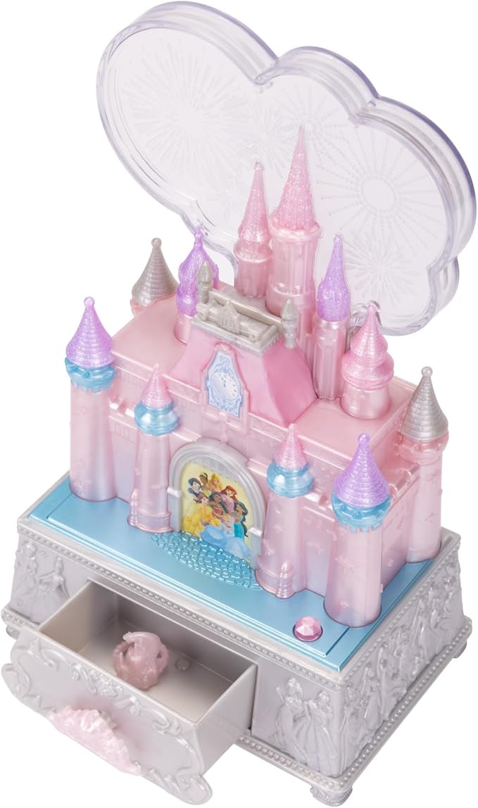 Disney Princess Jewelry Box for Girls Princess Castle Keepsake Jewelry Box with Music & Firework-Like Light Show, Plays Song “A Dream Is a Wish Your Heart Makes”