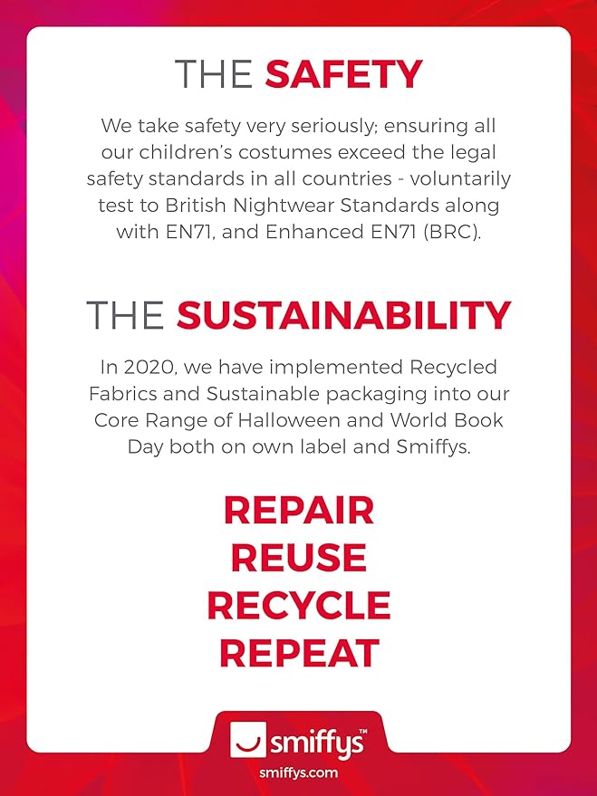 - Please note that all our Smiffys products will always come in full Smiffys branded packaging.