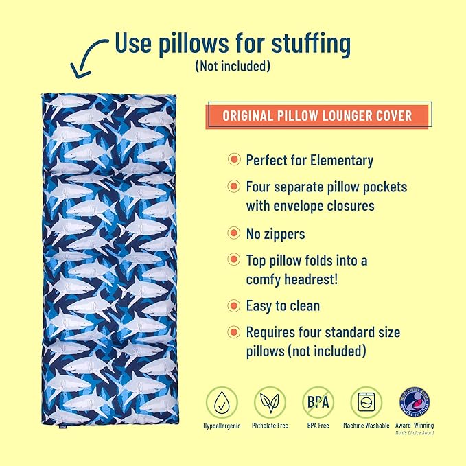 Wildkin Kids Floor Lounger: Ideal for Boys and Girls, Travel-Friendly, Perfect for Sleepovers - Pillow Lounger for Kids, Requires Standard Size Pillows Not Included (Sharks)