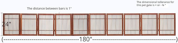 - This is a solid wood pet gate. The distance between the vertical bars is 1" This dog gate can be used on the porch outdoors. Urnporium Wooden freestanding pet gates are versatile barriers designed to keep pets confined to specific areas of the home while maintaining an attractive aesthetic. Constructed from durable wood, these gates feature a charming design that complements home decor and can easily be moved to different locations as needed.