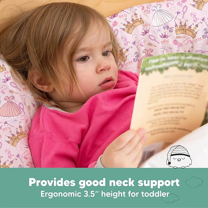 Toddler Pillow with Pillowcase - 13x18 My Little Dreamy Pillow, Organic Cotton Toddler Pillows for Sleeping, Kids Pillow, Travel Pillows,Mini Pillow,Nursery Pillow,Toddler Bed Pillow (Dear Princess)