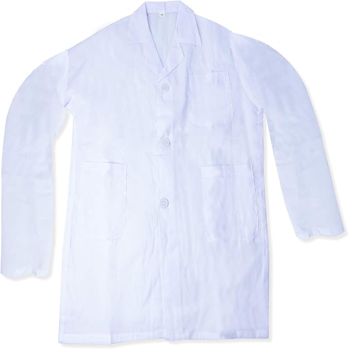 - High quality washable material kids science lab coat for dressing up as a scientist, made of durable polyester and cotton material. Long sleeves, pockets included and three buttons. Ideal for kids dress up,costume, school career party and other activities