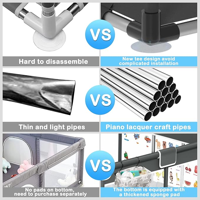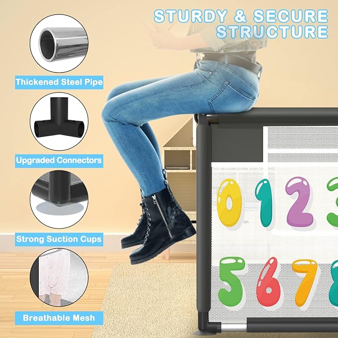 - ✅【Safer Design】There are 10 anti-skid suction cups under the fence column, which can prevent the fence from sliding and turning over on a smooth floor; the 27-inch fence height effectively prevents children from leaving the play area and provides safety for children For protection; The 360-degree wide-angle viewing angle allows you to observe the child's movements at any time!