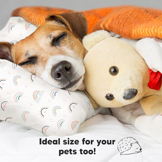 Toddler Pillow with Pillowcase - 13x18 My Little Dreamy Pillow, Organic Cotton Toddler Pillows for Sleeping, Kids Pillow, Travel Pillows,Mini Pillow,Nursery Pillow,Toddler Bed Pillow (Jolly Rainbow)