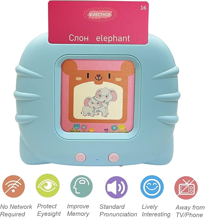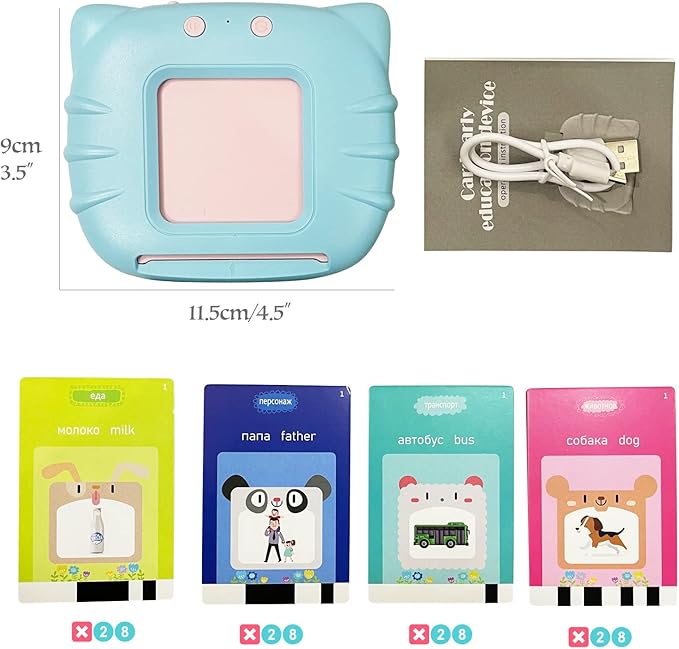 - Toddler Russian Learning Toys - This speech therapy toy includes a card reader and 112 double sided flash cards covering 12 subjects like shapes, colors, animals, daily necessities, transports, food, fruits, vegetables, costumes, nature, persons & jobs. Great learning toy for 3 year olds and up to learn sight words, enhance cognitive ability, exercise hearing and build vocabulary. Great autism sensory toys for autistic children