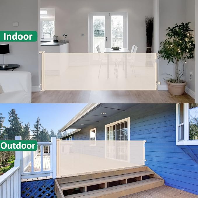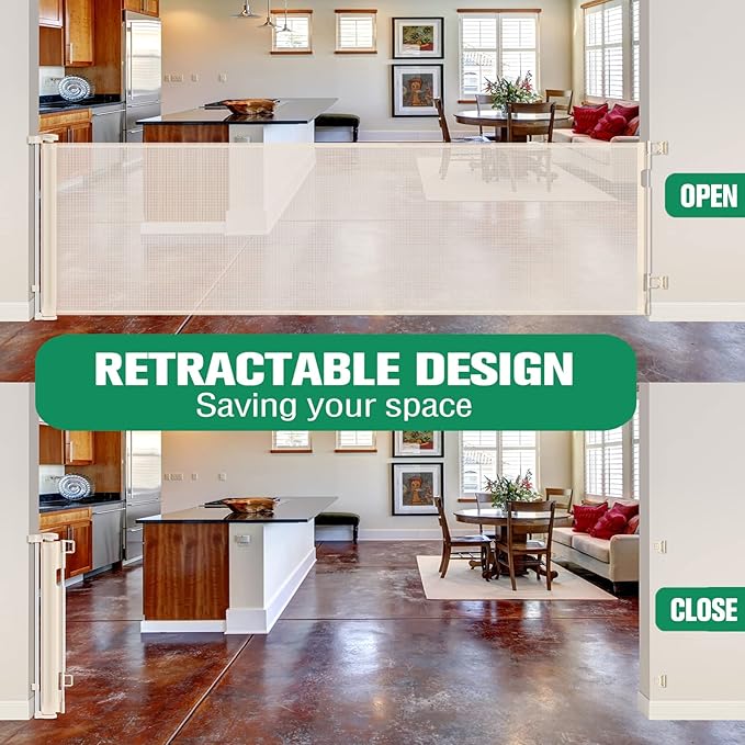 - [Retractable Design - Saving Space] The retractable dog gate is easy to use in high traffic areas, and the retractable gate can be completely retracted when not in use without taking up a large space.
