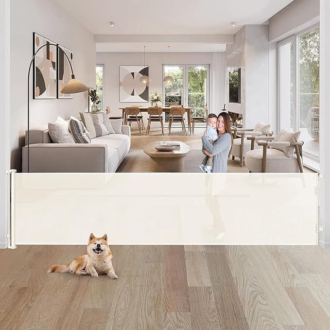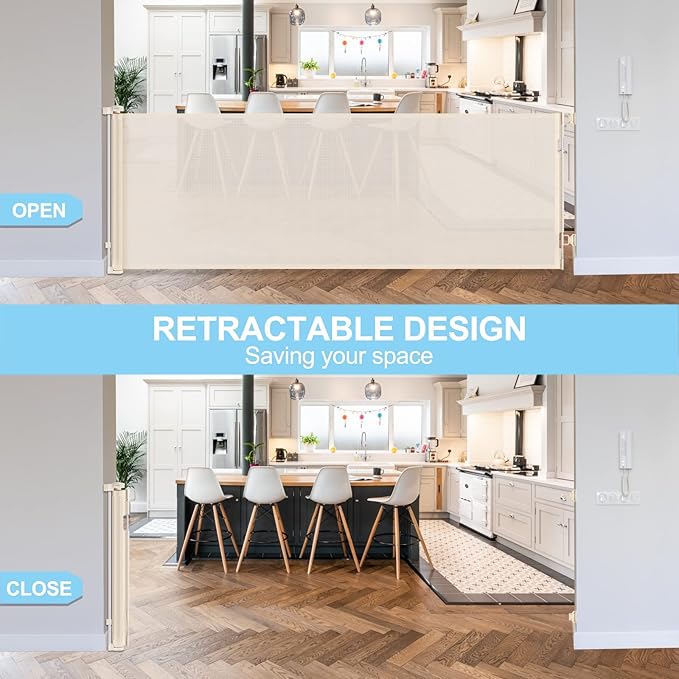 - Retractable Gate-Saving Your Space: The extra long baby gate is retractable, the mesh can be rolled up when not in use, not taking up your space, and when there is a party in the house, easy for your friends to pass through.