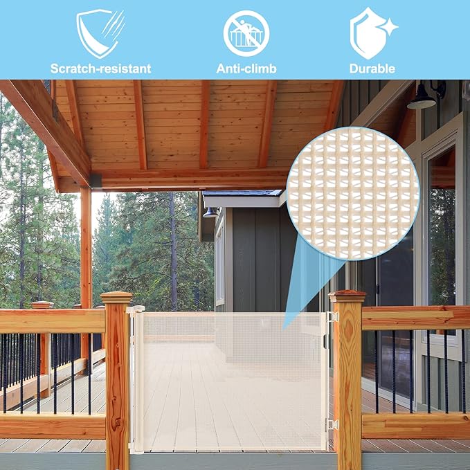 - Durable Scratch-resistant Mesh:The mesh of the extra long outdoor gates for kids is made of soft and durable scratch-resistant mesh, which not only won't bump your child but also can resist pet's claws.