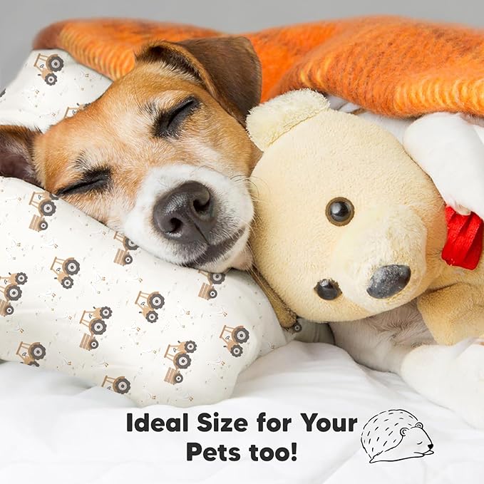 Toddler Pillow with Pillowcase - 13x18 My Little Dreamy Pillow, Organic Cotton Toddler Pillows for Sleeping, Kids Pillow, Travel Pillows, Mini Pillow, Nursery Pillow, Toddler Bed Pillow (Tractor)