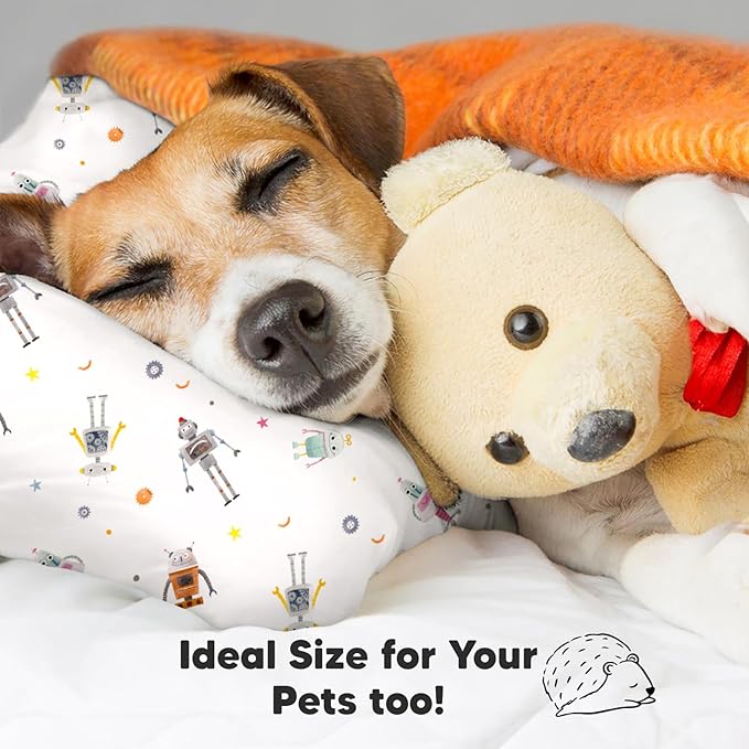 Toddler Pillow with Pillowcase - 13x18 My Little Dreamy Pillow, Organic Cotton Toddler Pillows for Sleeping, Kids Pillow, Travel Pillows, Mini Pillow, Nursery Pillow, Toddler Bed Pillow (Robo Pals)