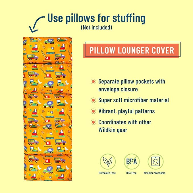 Wildkin Microfiber Pillow Lounger, 87 X 27 Inches, Under Construction