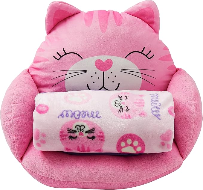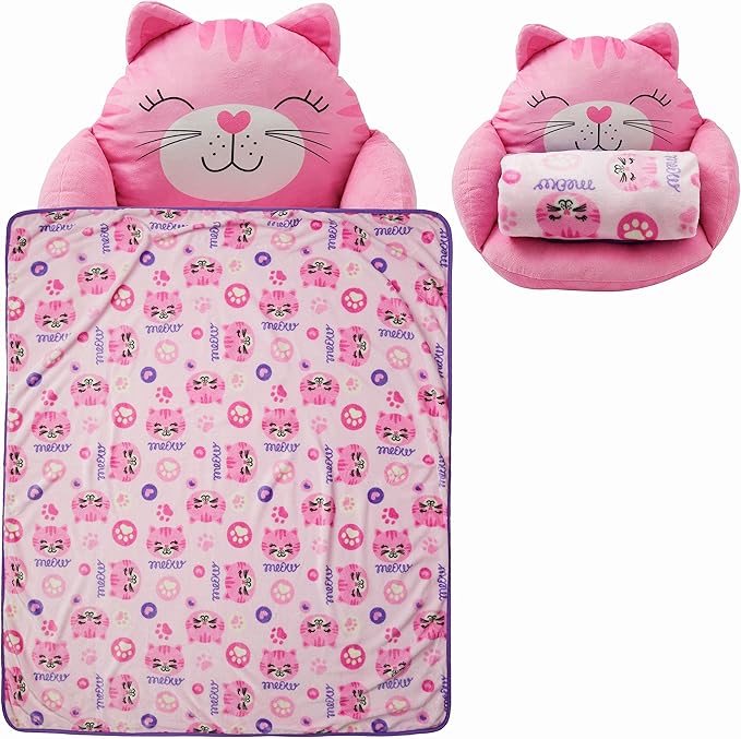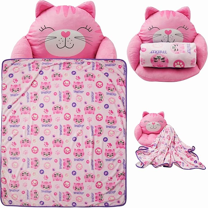 - Multi-functional Design: This Kids Cat Lounge Pillow features a playful cat design with a built-in blanket, making it the perfect plush animal cozy cushion for playtime, naptime, and snuggling up in the playroom or bedroom.