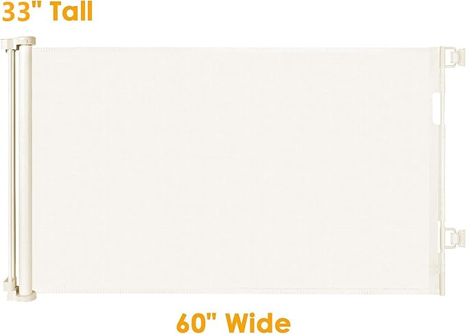 - [60 Inch Extra Wide Baby Gate ] This retractable baby gates Fits openings up to 60" wide and is 33" tall which can be adjusted to fit your openings according to your needs. Suitable for babies and dogs.