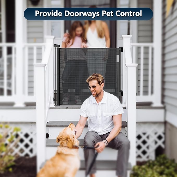 - 【Retractable & Durable Mesh Dog Gate】Keep pets out of specific areas, such as the kitchen, dining or bedroom. Mesh area is taut,sturdy,scratch-resistant and anti-climb. Avoid the baby or dog to crawl through underneath the baby gate, mounting bracket is adjustable that fit the height of your wall skirting board