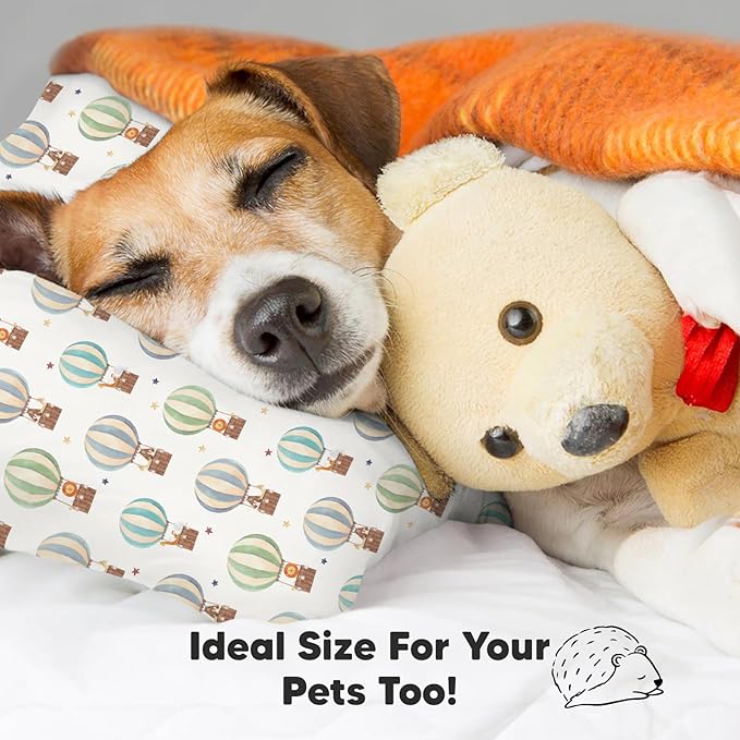 Toddler Pillow with Pillowcase - 13x18 My Little Dreamy Pillow, Organic Cotton Toddler Pillows for Sleeping, Kids Pillow, Travel Pillows, Mini Pillow,Nursery Pillow,Toddler Bed Pillow(Hot Air Balloon)