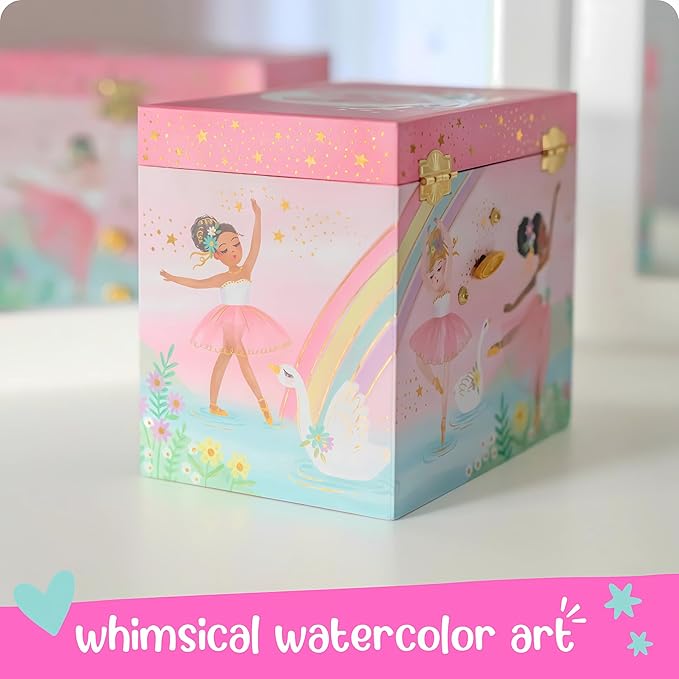 - Ballerina Jewelry Box For Girls - Igniting awe & wonder in imaginative hearts, this musical jewelry box for girls brings radiant smiles to every little girl. Watch as she becomes immersed in the gracefully dancing ballerina, twirling to Swan Lake