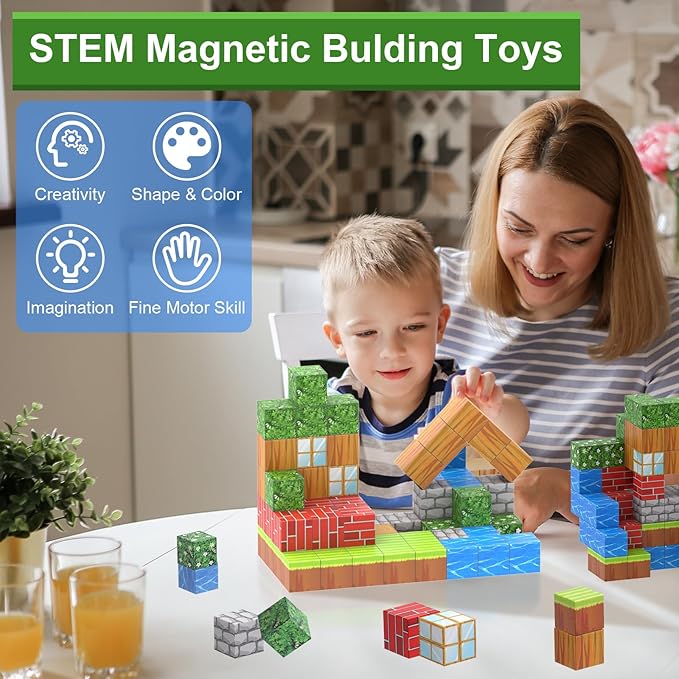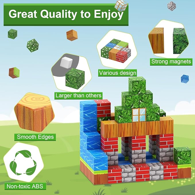 - BUILD, CREATE & UNLEASH IMAGINATION: Our Magnetic Blocks set allows kids to build and create various buildings and landscapes with ease, thanks to the strong magnetic power. Let their imagination run wild!