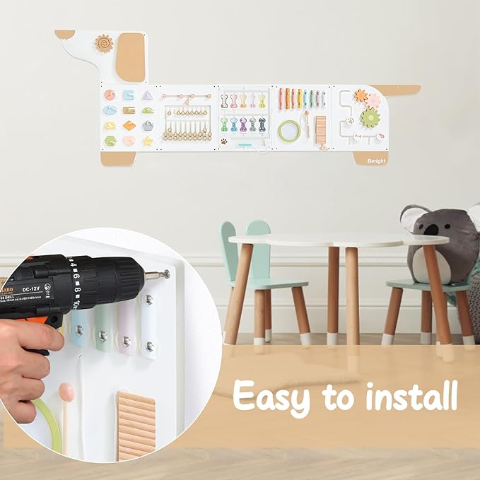 - 【UPGRADED SIZE & STYLE】Compared with Beright’s classic dinosaur-shaped wall busy board, we have upgraded the size of the new puppy-shaped one! It's bigger than the classic one. It's perfect for small groups of children to play together and socialize! Just like children's room, kindergarten, kids activity center and any other place for them to play together.