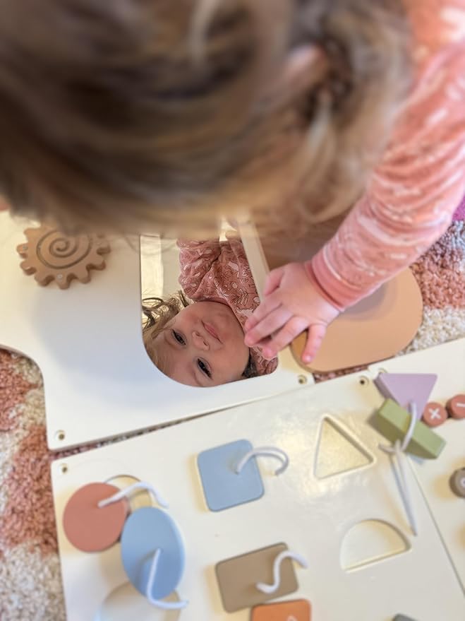 - 【MONTESSORI TOYS 】Our wall multi-sensory busy board has 9 of the most popular activities. Including shape peg puzzle, children's mirror, beads maze, magnetic color & number maze and more. All the games follow Montessori educational rules, which will turn any wall into a playground.
