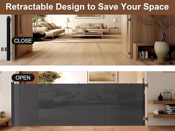 - Space Saving Design: Unlike traditional bulky baby gates, this retractable baby gate is a real space saver. It conveniently retracts when not in use, making it perfect for living spaces or situations where you want to maintain a clean and open environment.