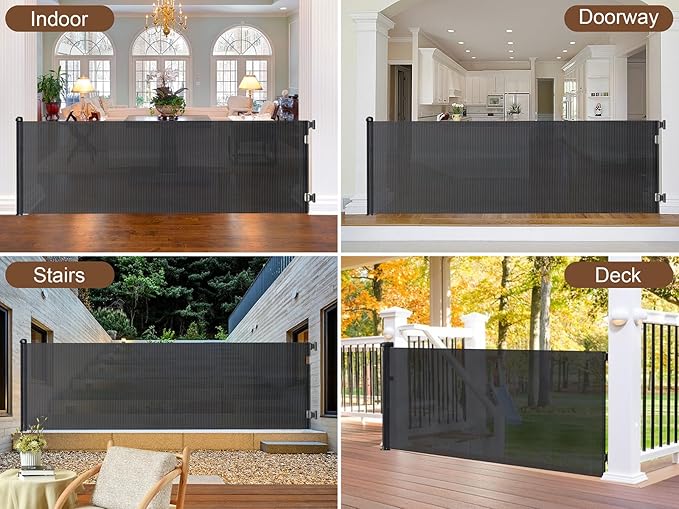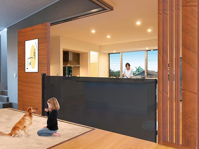 - Safety First: The retractable gate features a dual locking mechanism that works as both a baby gate and a pet gate to keep mischief at bay by providing a safe, enclosed play environment.With a safety auto lock feature, the retractable gate securely closes to prevent accidental opening by babies and pets when locked.