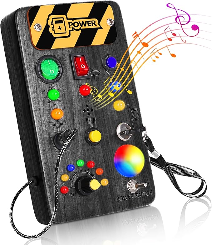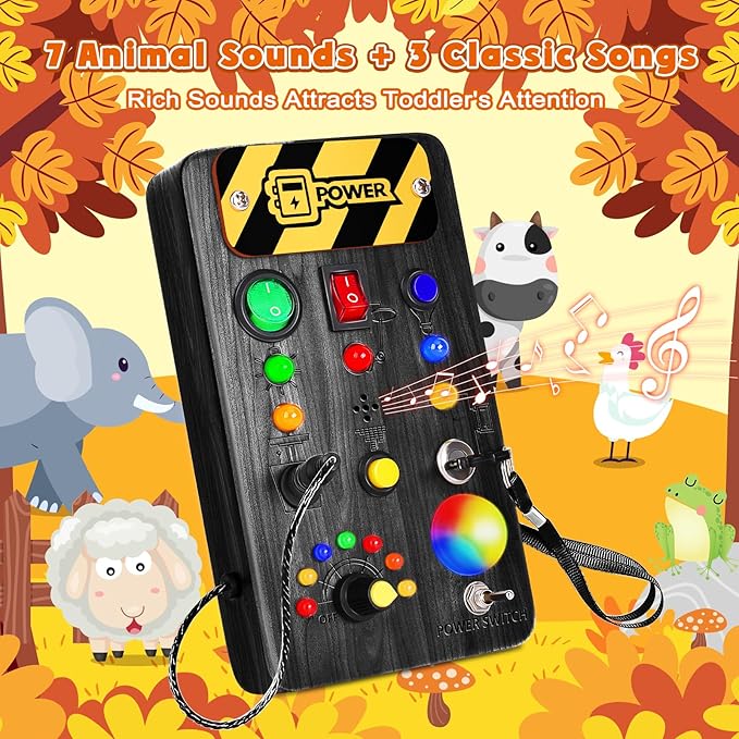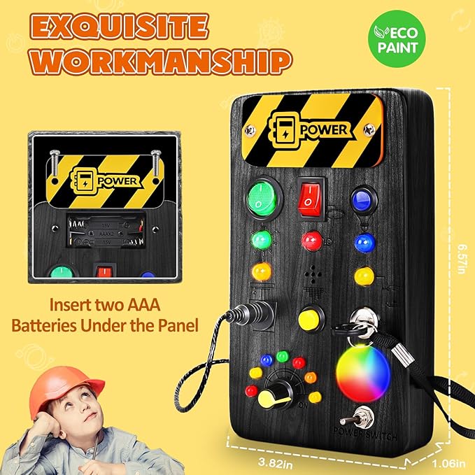 - 💡【13 LED + 8 Buttons Light Up Busy Board】Light switch board includes different colored and sized lights and buttons that can improve kids' sustained concentration and perception of cause and effect. Baby busy board needs 2 AAA Batteries (Not Included)