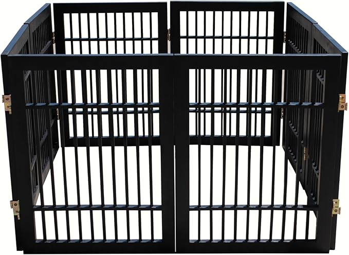 Pet Dog Gate Strong and Durable Freestanding Folding Acacia Hardwood Portable Wooden Fence Indoors or Outdoors by Urnporium (Black Pet Gate, 8 Panel 24" Tall)