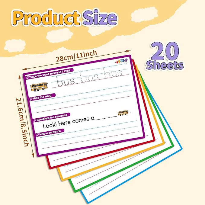 - LEARN CVC WORDS IN 4 DIFFERENT WAYS: Kids can trace the word, write the word, then use the word to complete a sentence, and finally, kids write the sentence to practice using the word in context! By combining them in multiple ways, children will become more proficient in mastering these words and corresponding sentence patterns.
