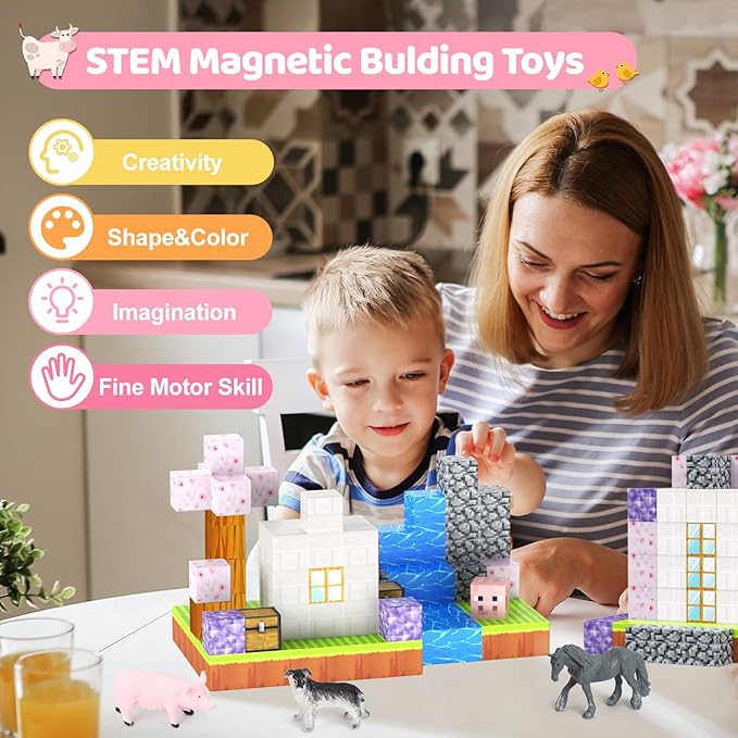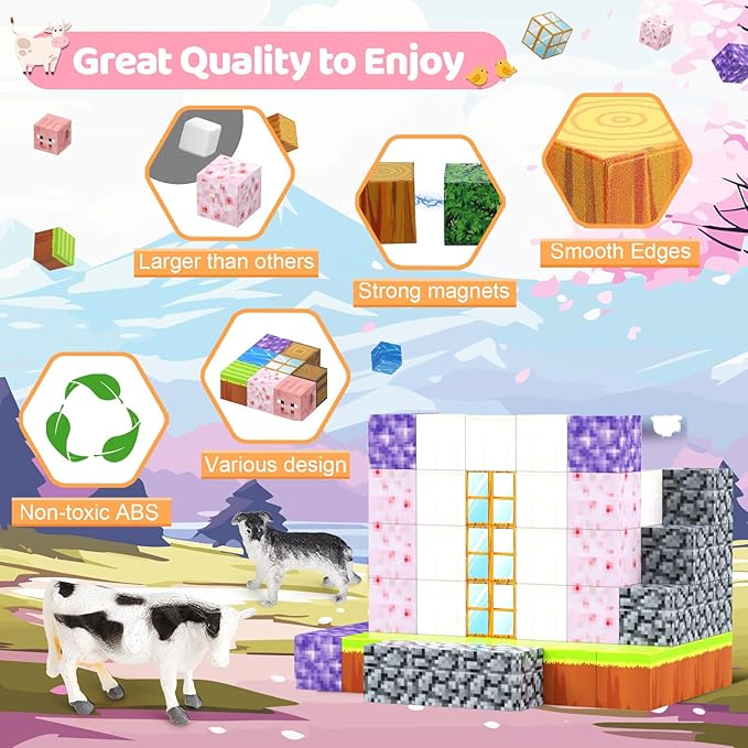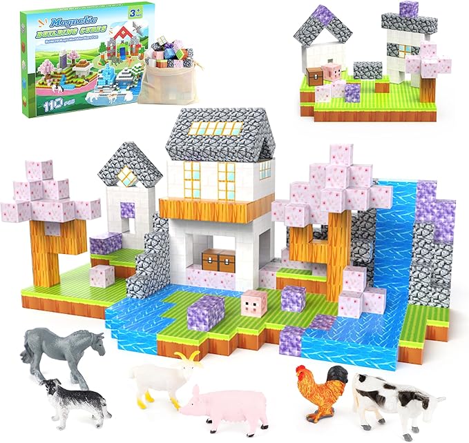 - CHERRY THEME: Step into the magical world of animal and cherry with our Magnetic Blocks set! This 110-piece set features vibrant magnetic blocks with 6 adorable animals, sparking endless creativity and fun for kids.