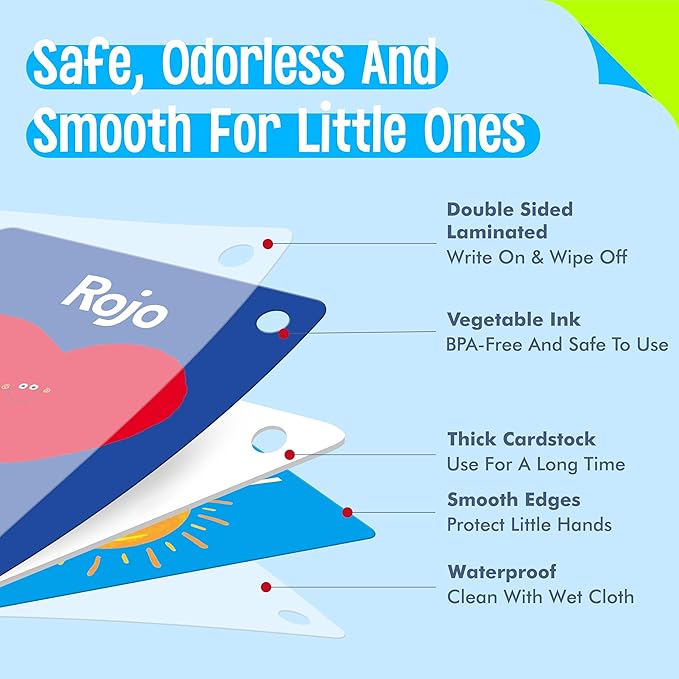 - Well Made: The card adopts sturdy and thickened paper material with PET film on both sides, durable and tear resistant. Printed with premium non-toxic vegetable oil-based ink, BPA-free and safe for babies to use. Bright colors and cute designs catch kids’ eyes and evoke a sense of excitement and joy. When children are surrounded by these colorful flashcards, they are more likely to be engaged and interested in what they are learning.