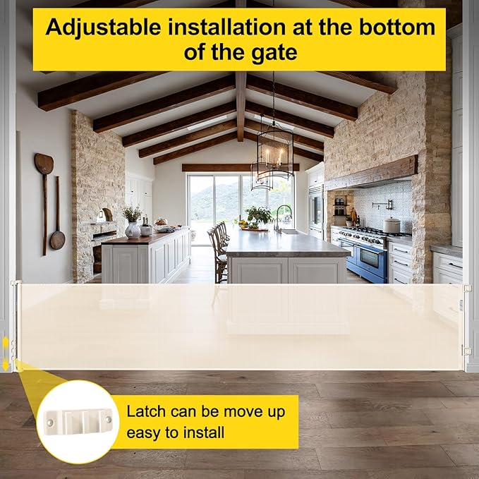 - [Baby Play Area] You can use the extra wide retractable baby gate to separate a safe play area for your baby in your home. Keep your dog out of the baby safety gate and do not disturb your baby.