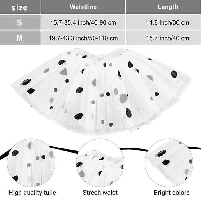 - 【Quality and reliable】dalmatian tutu skirt is made of tulle, looks very fluffy and flowy. Dog ears headband is made of soft fabric and a flexible hair hoop,soft and comfortable,secure and durable.The collar is made of velvet,soft and comfortable,safety and skin friendly.The dalmatian dots are mainly made of felt, not easy to fade or break, easy to accompany you for a long time.Crayons can be applied to any part of the body,safe and easy to wipe.