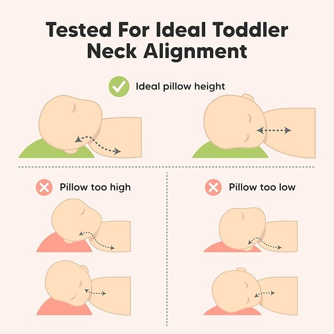 - Fun-Sized, Great Support - KeaBabies Toddler Pillow gently support the neck and head, during sleep to promote proper spinal alignment. Offering a perfect balance of softness and firmness at an ideal height, tailored for your toddler's healthy growth.