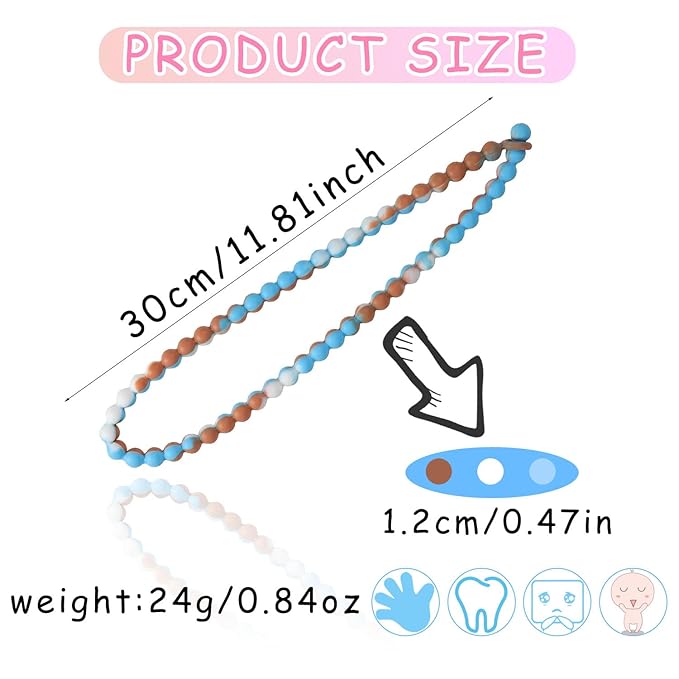 - 【Adjustable Length】:The length of the chew necklace can be adjusted according to your needs. It can be worn as a necklace or bracelet or hung on a bag or stroller. It can adapt to any scene and bring convenience to your life.